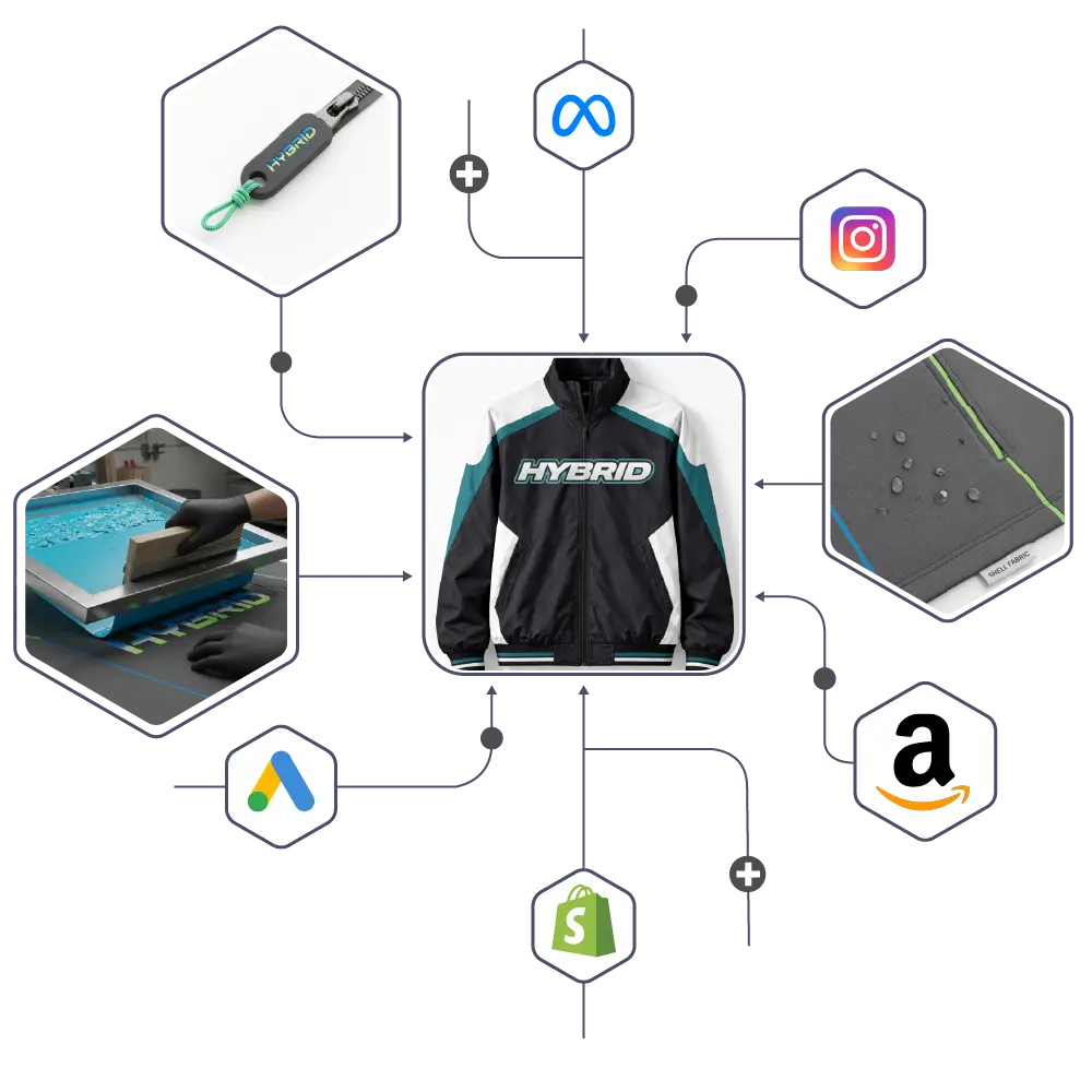 We develop fully custom clothing lines that unite design vision with function. Through fabric mapping and refined patterning, we create silhouettes from relaxed to tailored. We source cottons, recycled polyesters, technical blends, and trims suited to each use case.